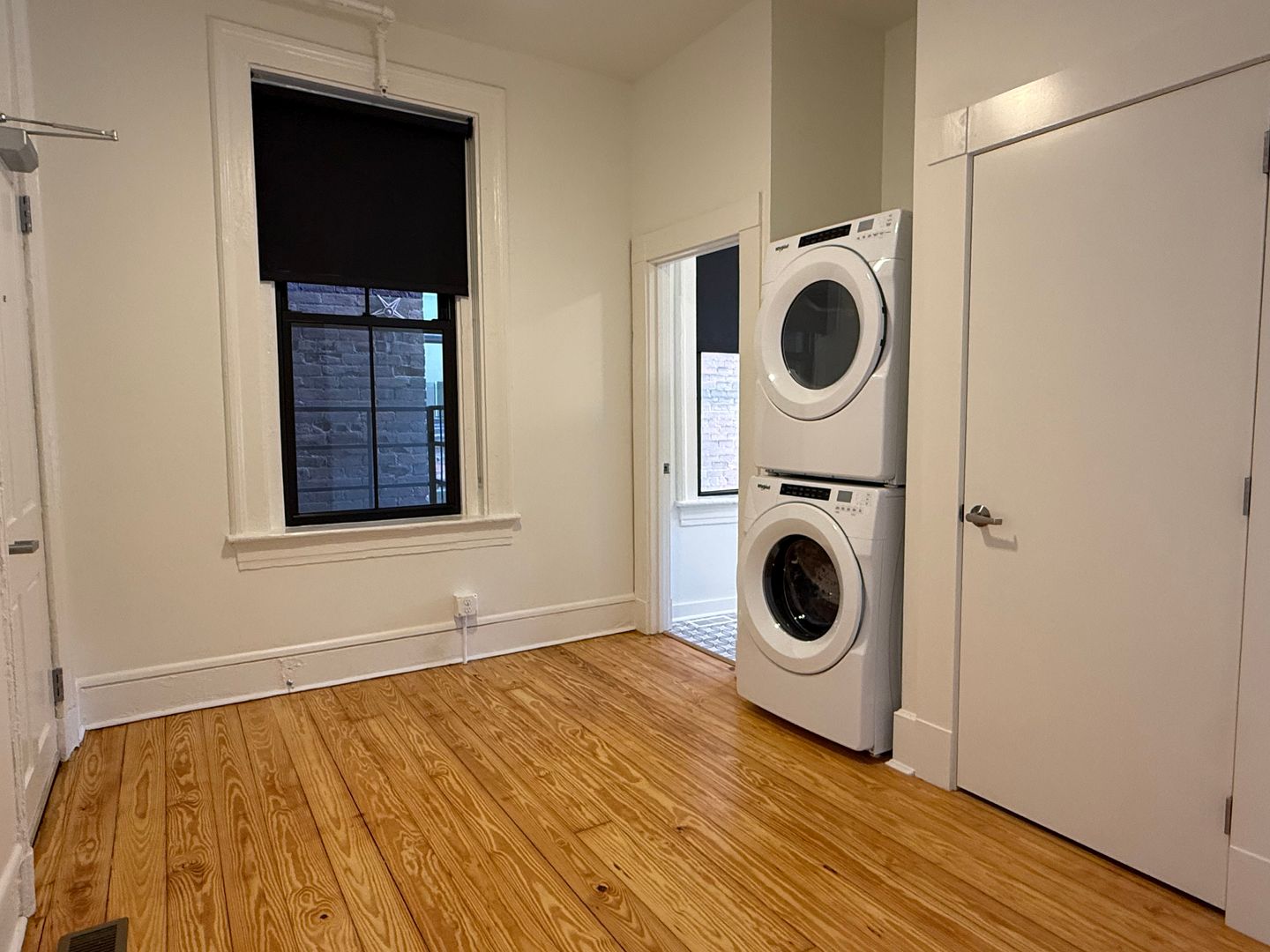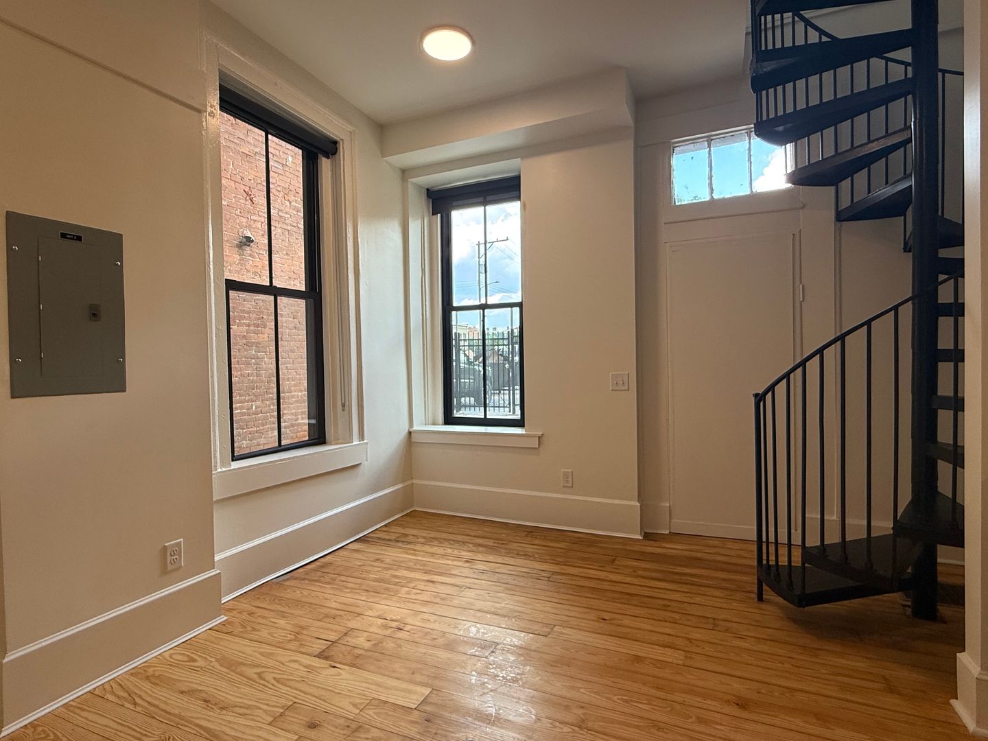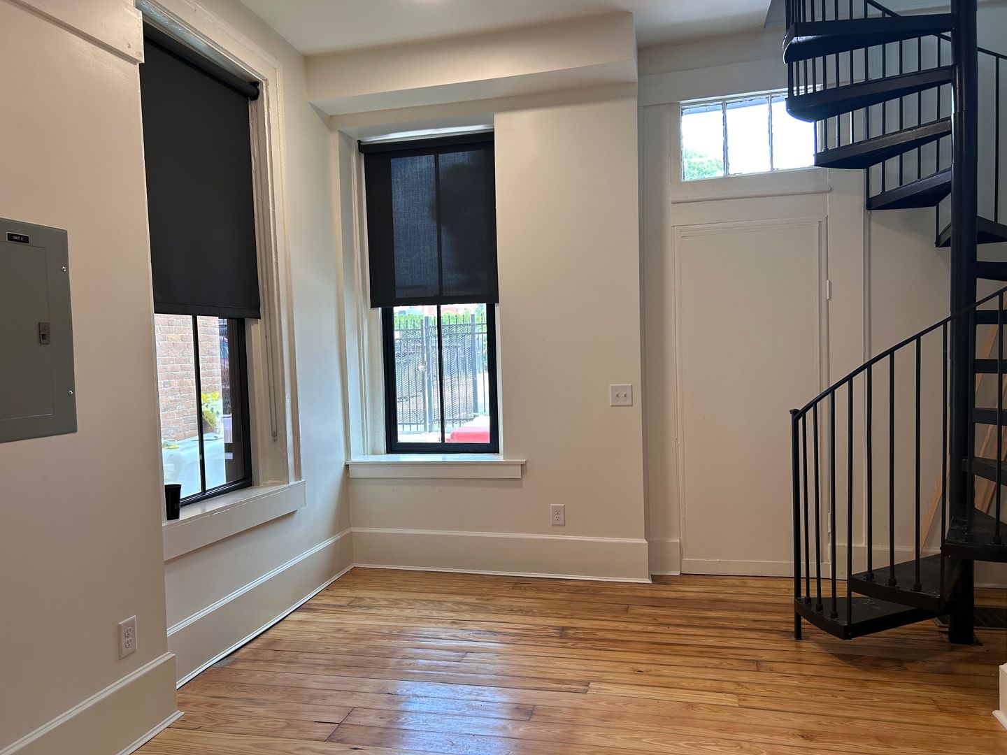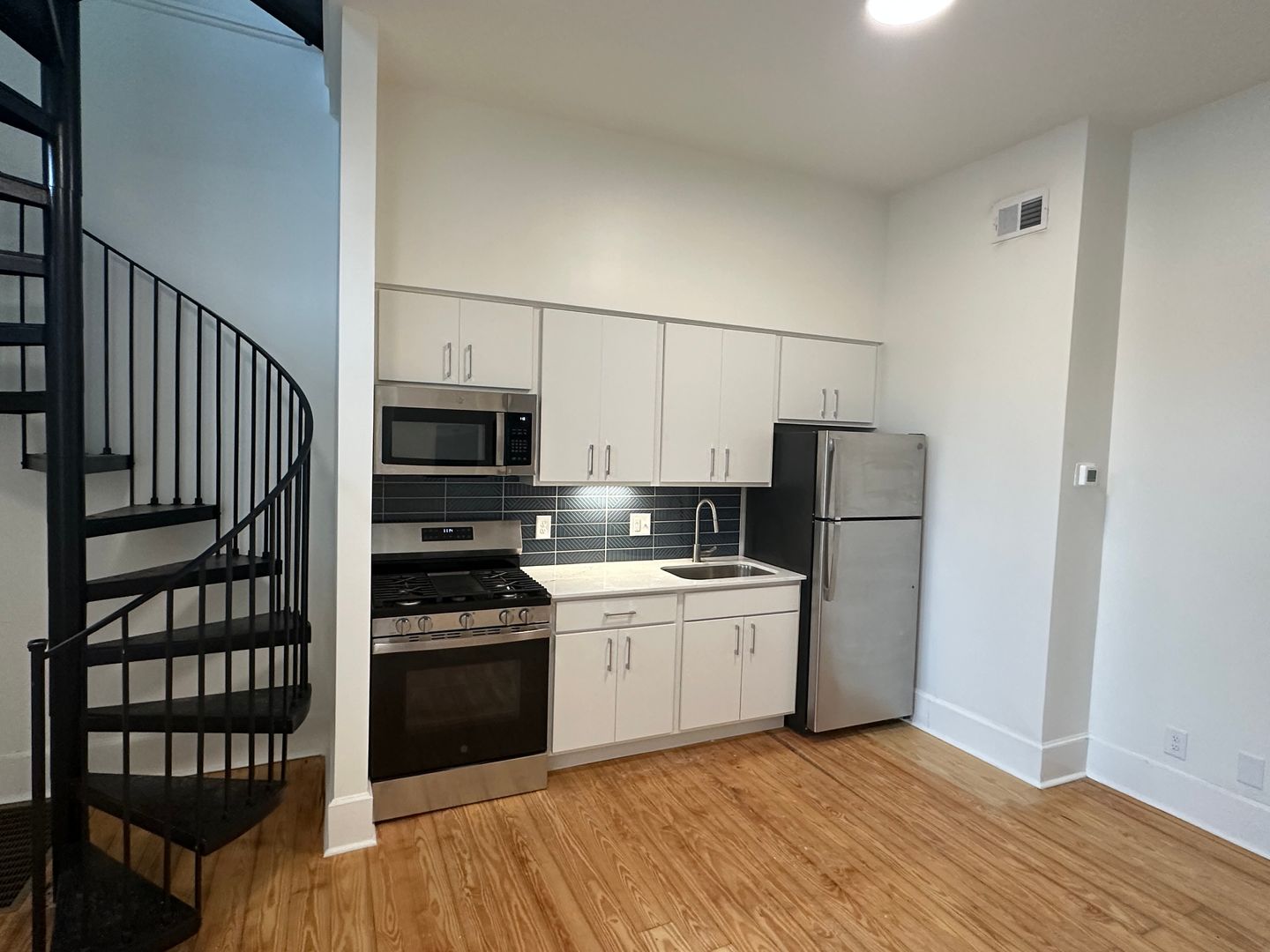 Unit #2 in 120 East 14th Street is a great 2-story loft with a spiral staircase. As you enter the unit you come upon your living room and brand new kitchen with stainless steel appliances and granite countertops. Up the spiral staircase is a nice sized bedroom with a double closet for plenty of storage and a bright bathroom. The unit is equipped with a washer and dryer as well as central heat and air.