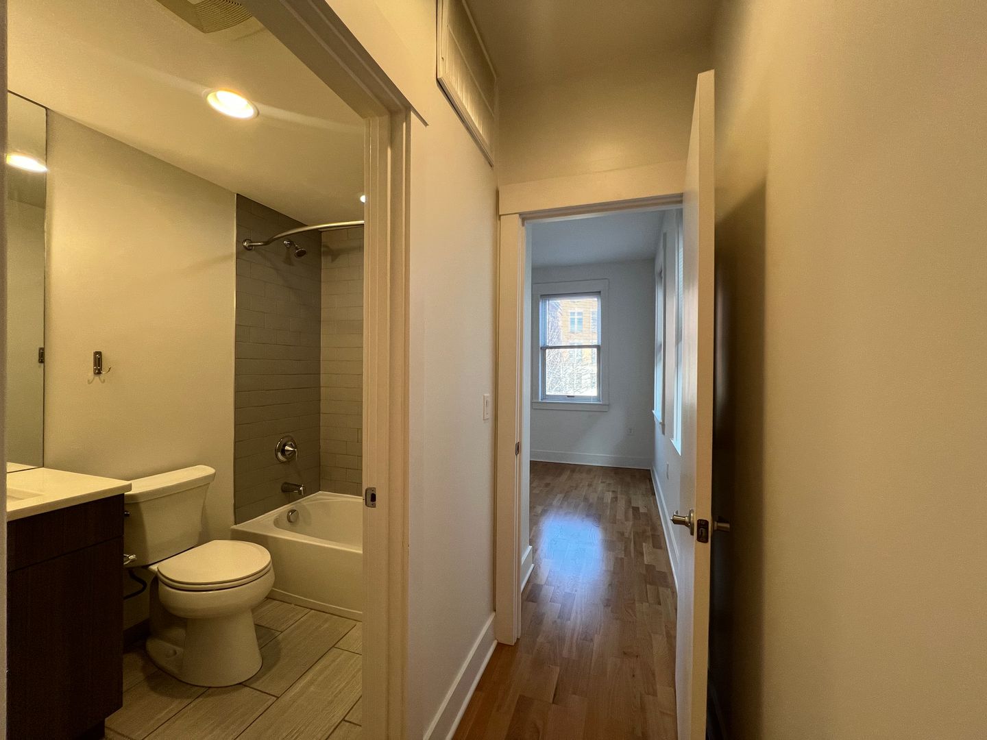 Unit 3 is located on the top floor on Broadway in Pendleton. This spacious one bedroom has stunning floors throughout, great lighting, large windows, ample closet space, and in unit washer & dryer. The kitchen has a large island and a pantry with five shelves for storage.