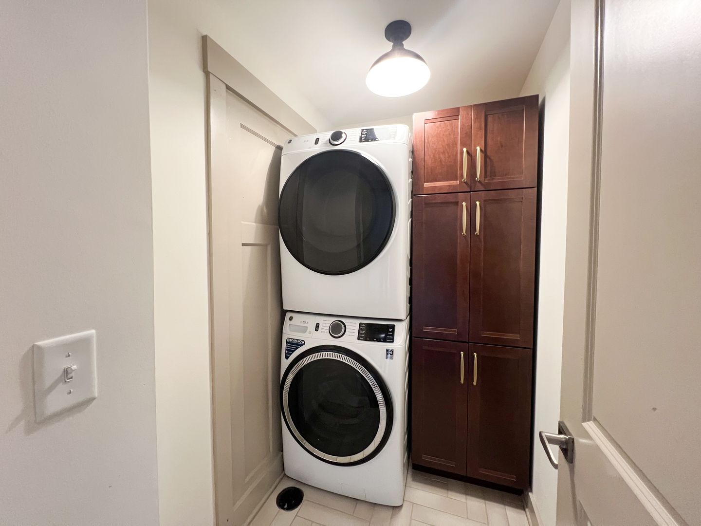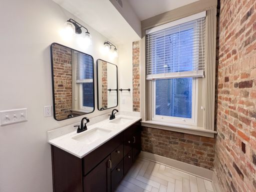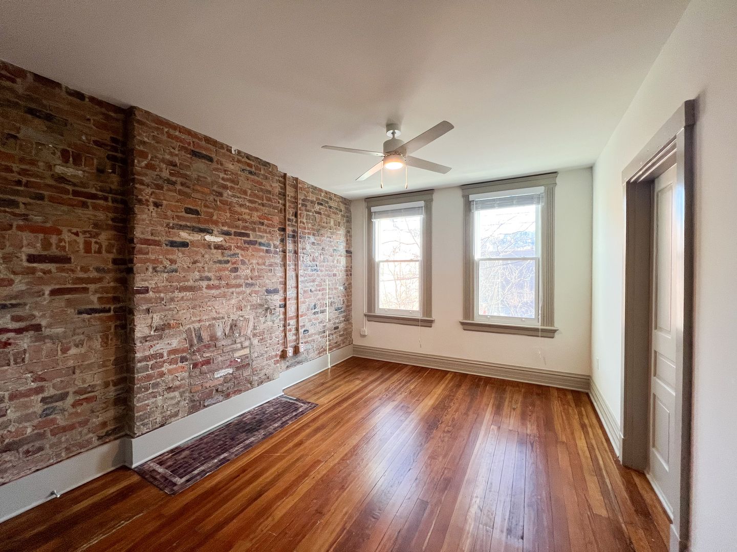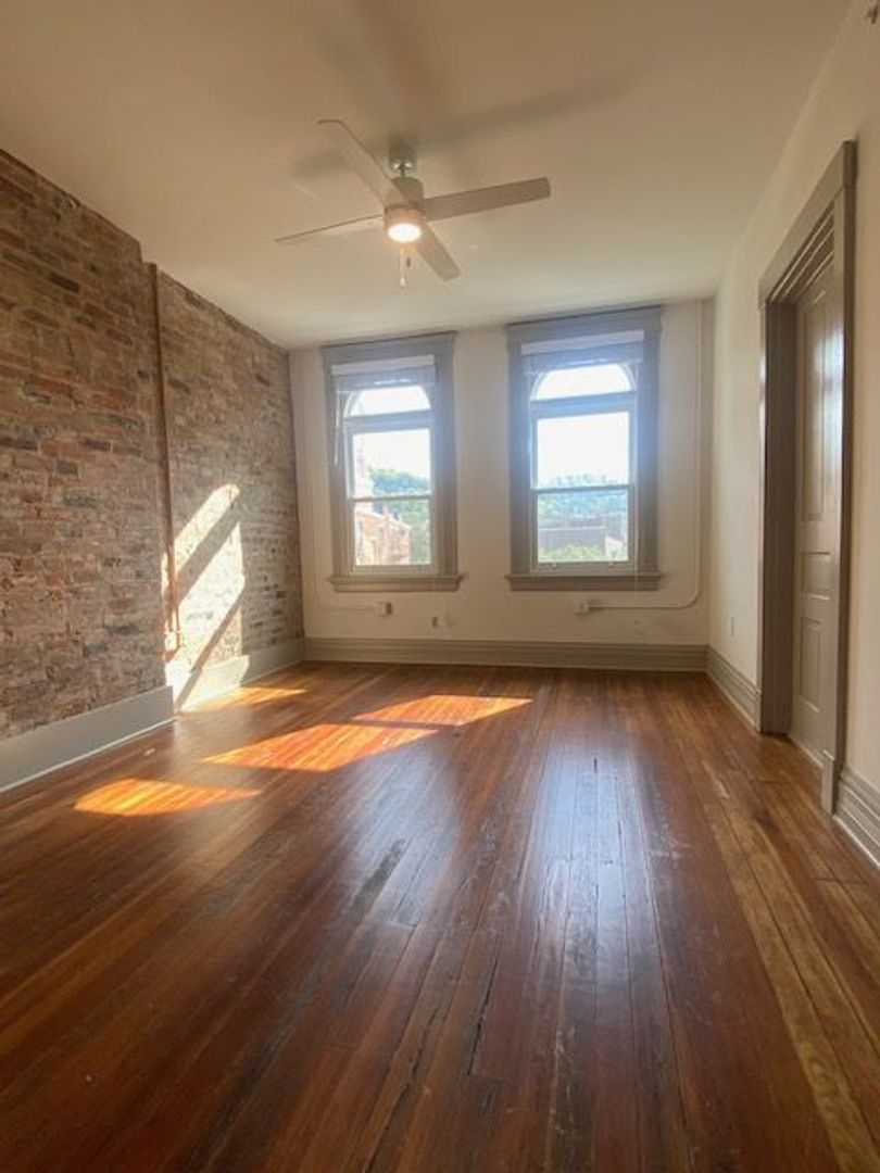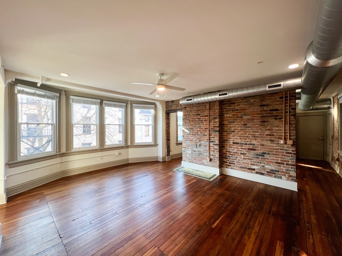 Upon entering the unit, you are greeted with hardwood floors, a perfect island for entertaining, gorgeous green backsplash and ample kitchen storage! Through the open doorway lies your living room with expansive bay windows. Both bedrooms overlook Race Street. Laundry room with linen storage.