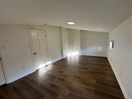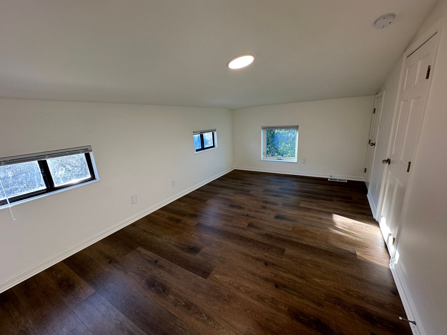 The apartment features a practical layout with two entryways: the main front door and a convenient side door near the kitchen, which offers direct access to parking. The unit has pristine hardwood floors and a contemporary kitchen outfitted with stylish fixtures. The layout offers a blend of comfort and functionality, with a thoughtful design that ensures both privacy and accessibility.
