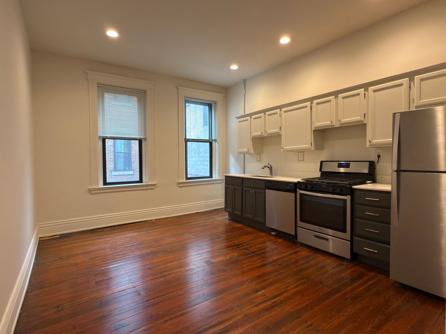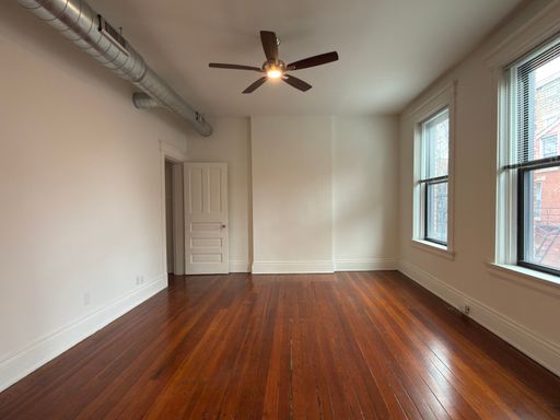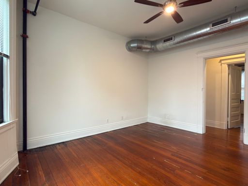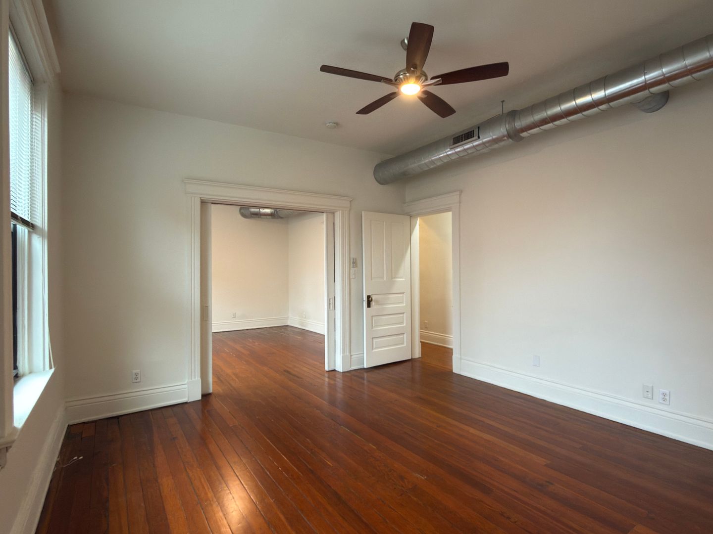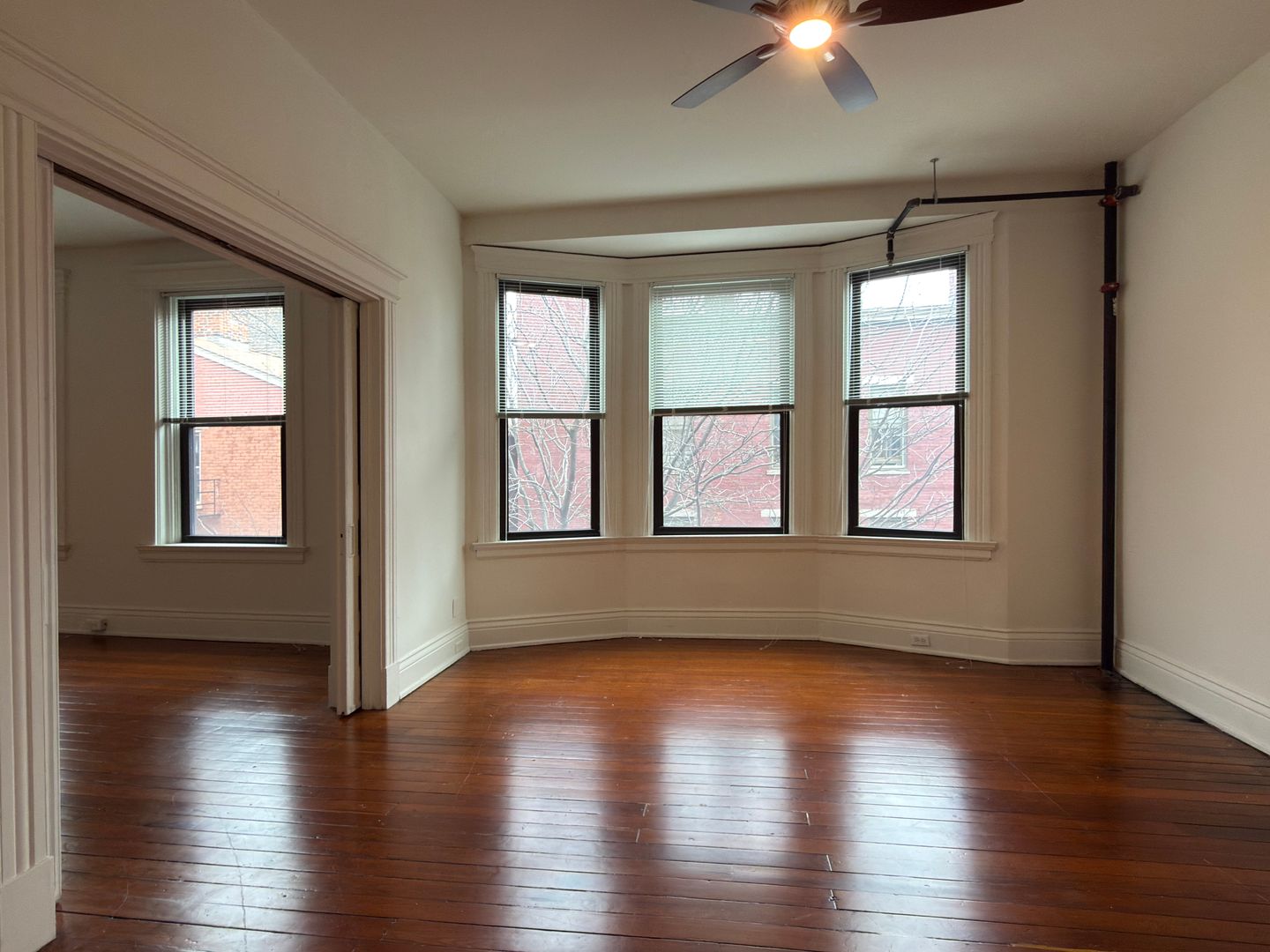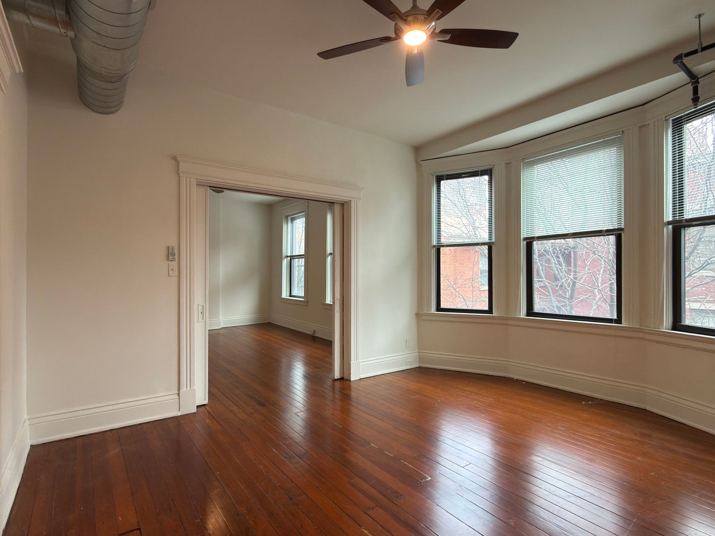 #14 is a spacious 2 bedroom or 1 bedroom + office, 1 bathroom that features beautiful bay windows and hardwood floors throughout.
