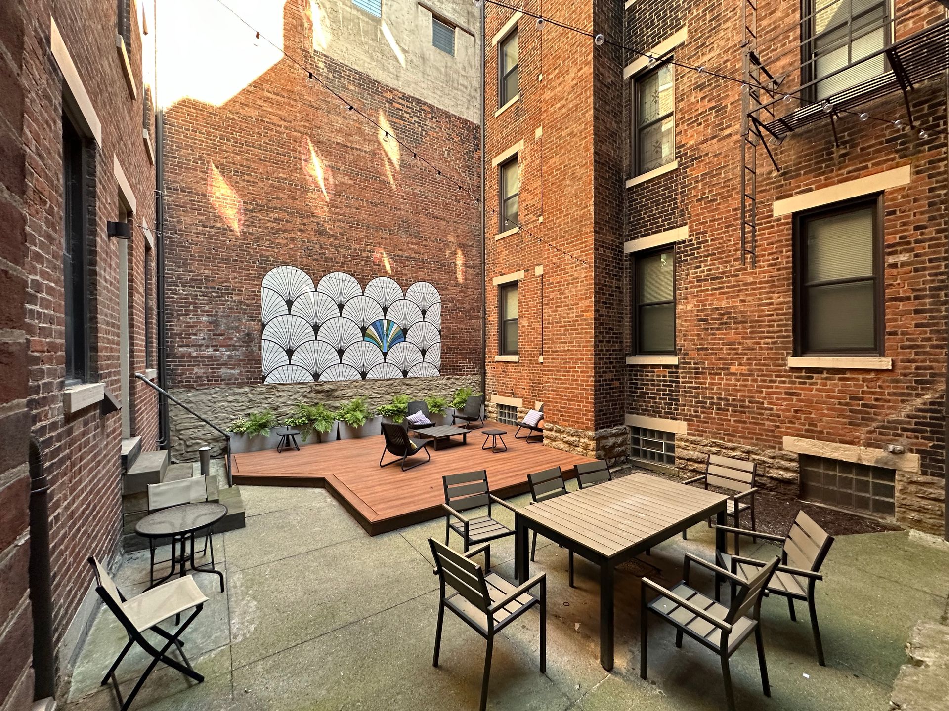 Enjoy the updated private courtyard to unwind after a busy day and listen to sounds from Music Hall.