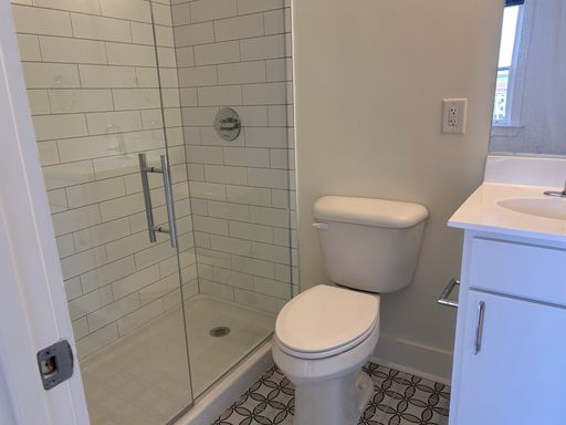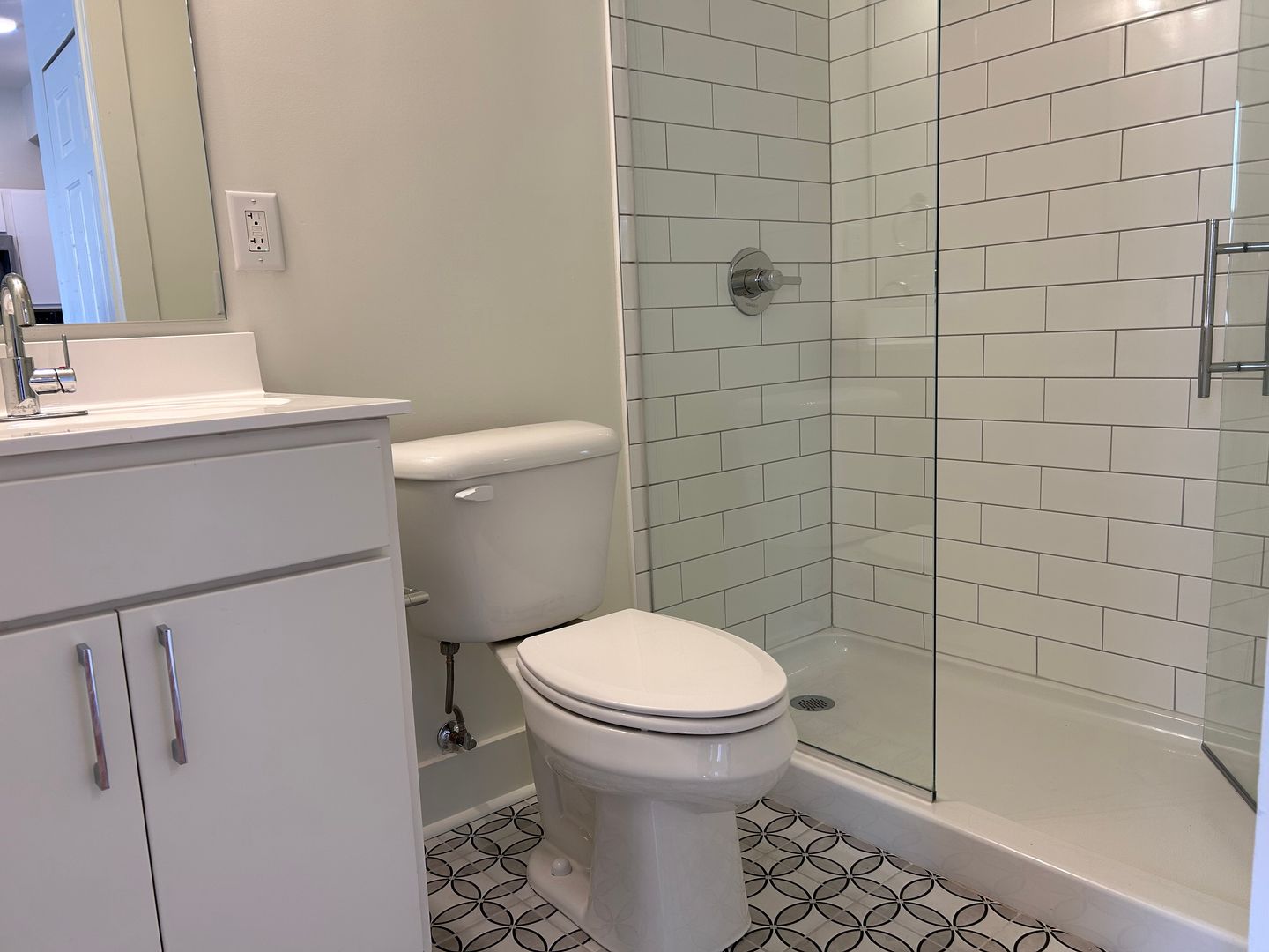 This 2-bed is situated on the top floor, this apartment features over 1,000 square feet of space. The layout is thoughtfully designed with the main stairwell separating the two sides of the unit. As you enter, you’ll find a kitchen and a living room on opposite sides of the entry, providing a nice flow and privacy. Each bedroom sits on opposite ends of the apartment, and both come with their own adjacent bathrooms, making it perfect for roommates or anyone who appreciates extra space and privacy.