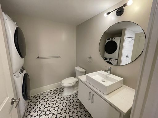 Upon entering the unit, you are greeted by stunning hardwood-floors, freshly painted walls, newly renovated bathroom and a gorgeous brand new kitchen! This unit offers a subway tiled shower, stacked washer and dryer, GE stainless steel appliances, quartz countertops and windows overlooking Main Street.