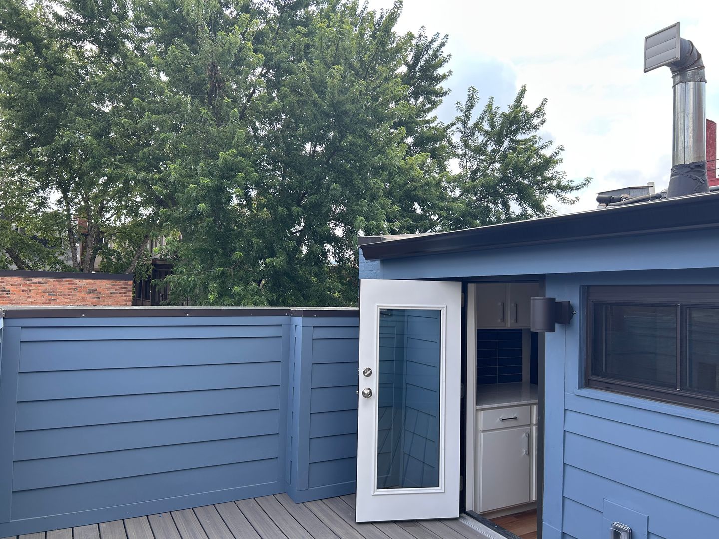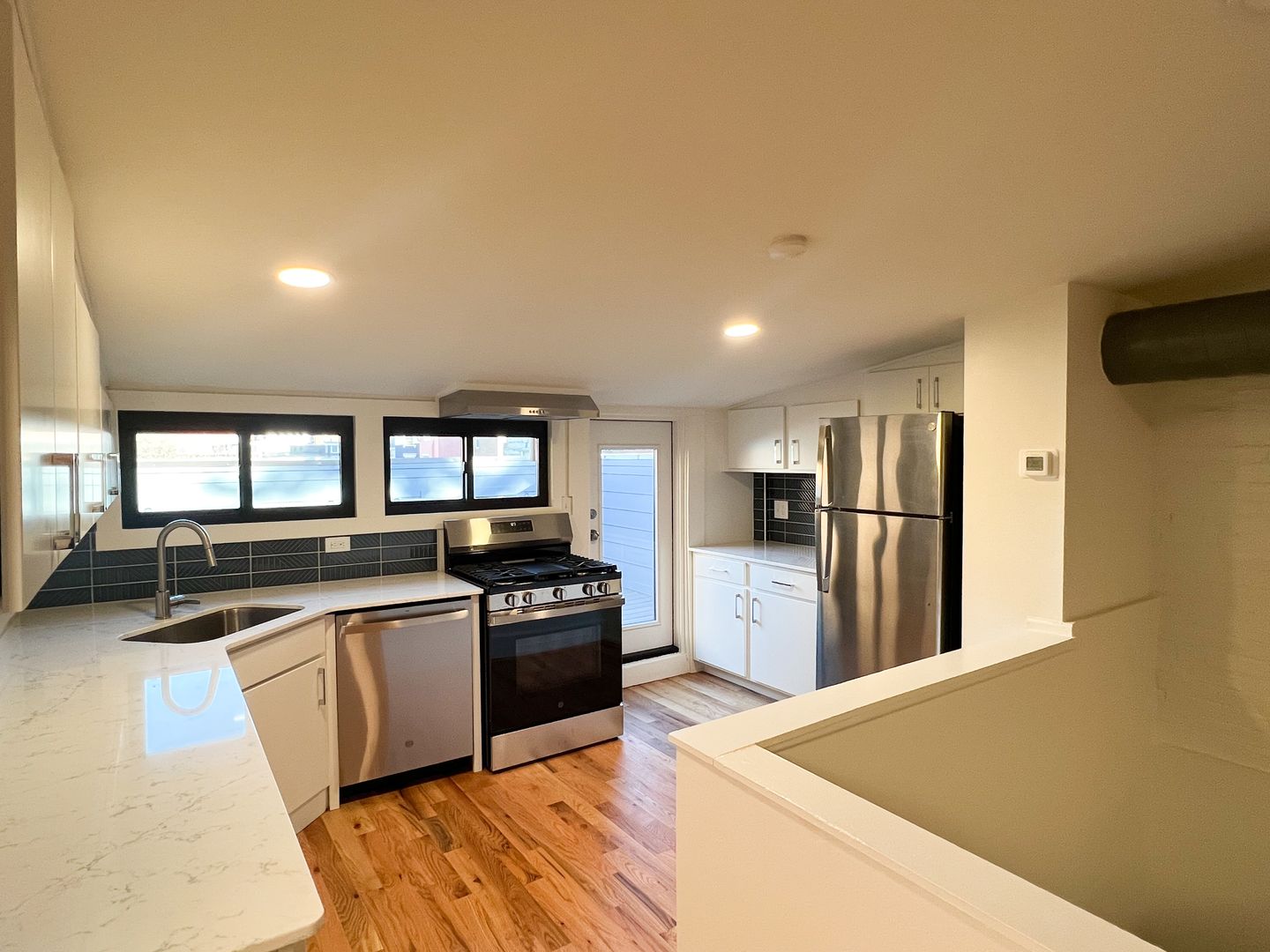 Unit #4 at 120 East 14th Street is a spacious 830 square foot urban getaway offering a private rooftop deck. Hardwood floors and controlled lighting are throughout this bright two story unit. The first floor has a bedroom and bathroom while the spiral staircase takes you to the kitchen, patio and second bedroom. The kitchen has stainless steel appliances and granite counter tops. The unit is equipped with a washer and dryer as well as central heat and air.
