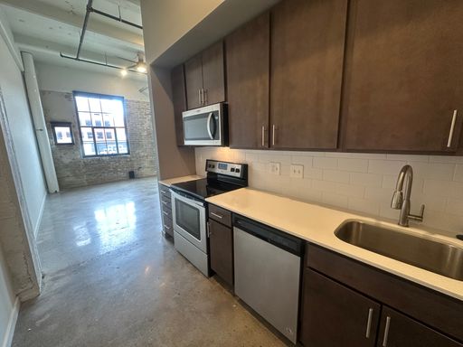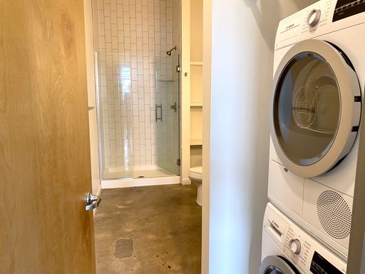 Inside each unit, you’ll find expansive custom historic windows that flood the space with natural light, stainless steel kitchen appliances, and elegant quartz countertops. Soaring ceilings up to 15 feet and exposed masonry — unique to every unit — add character and charm. Each residence also features LED lighting, walk-in closets, built-in wine racks, and an in-unit washer and dryer for ultimate convenience.