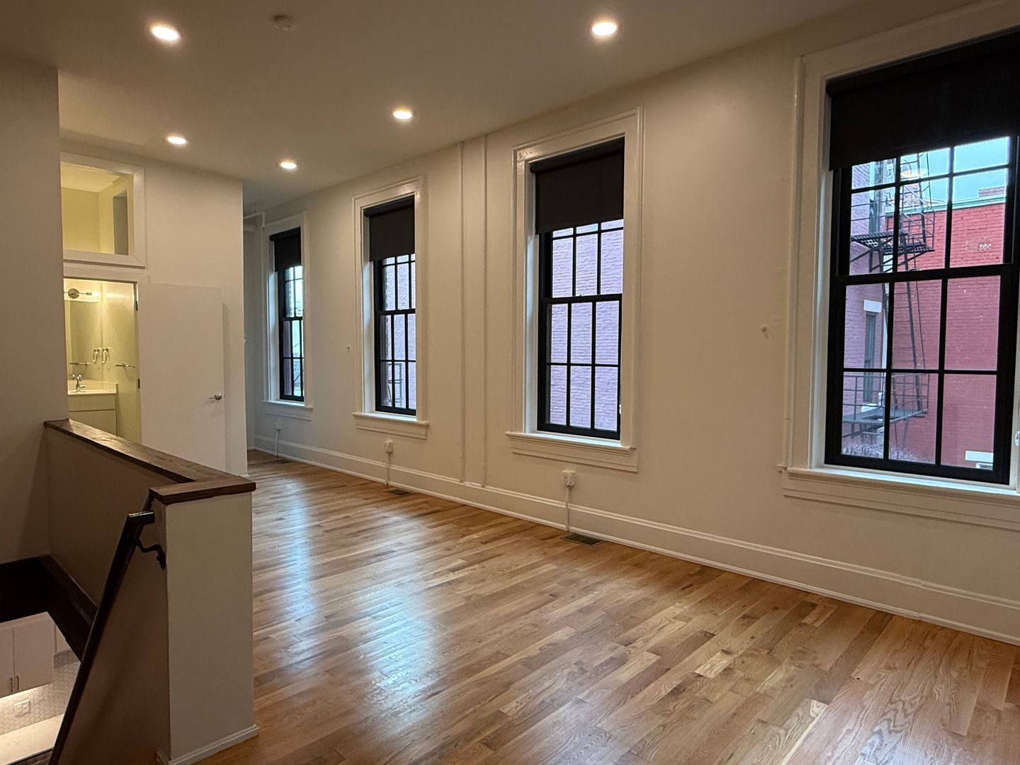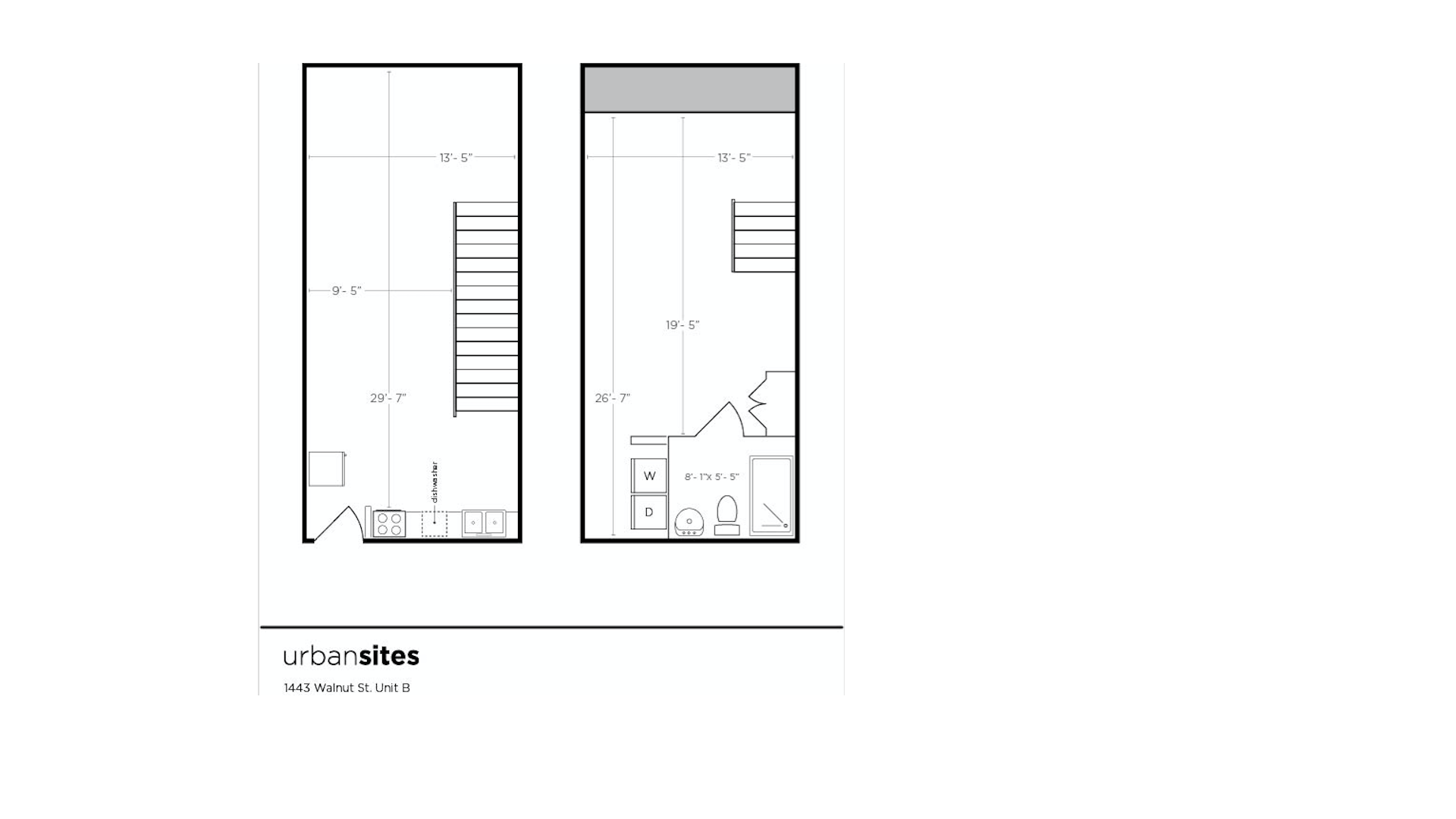 Loft B is on the first and second floors of 1443 Walnut Street. This spacious 1-bedroom/1-bathroom apartment is 2-stories and equipped with exposed brick, recessed lighting and beautiful hardwood floors.