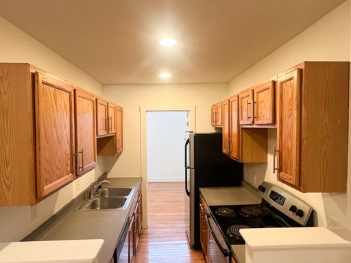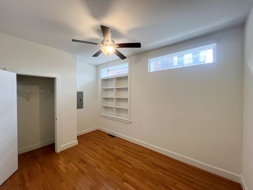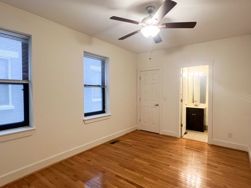 Unit #4 is a spacious two bedroom, one and a half bathroom unit that offers wall-to-wall hardwood flooring, and stainless steel appliances including a dishwasher and disposal. Updated track lighting and ceiling fans throughout the space as well as ample closet space and a bonus space off of the living.