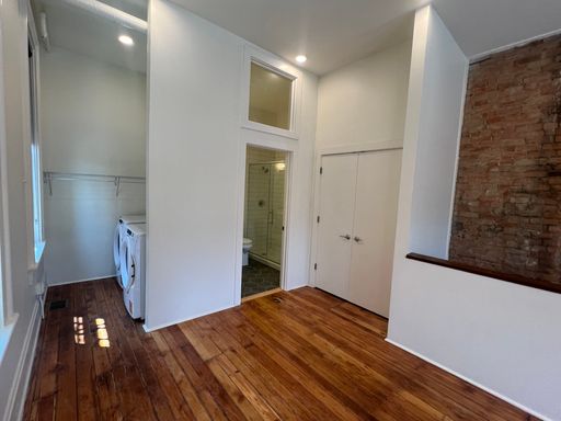Unit A is a 2-floor loft style apartment on the first floor offering exposed brick and beams, hardwood floors, and a washer/dryer in the unit. You will walk into the industrial style kitchen with stainless steel appliances and backsplash that opens up into your bright living room. Upstairs you will find your bedroom, bathroom and in unit washer and dryer. Enjoy the central heat/air.