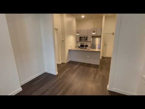Unit 102 is a first floor unit. As you enter the unit you are greeted by the kitchen featuring new stainless steel appliances including refrigerator, dishwasher, stove and microwave, as well as quartz countertops. Straight ahead is the spacious living room with tall ceilings and windows that line the unit.